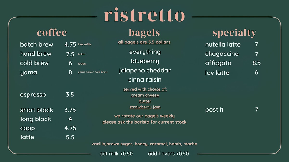 Introducing the Menu at Ristretto